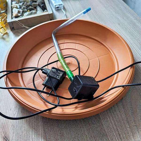 • Schlussendlich setzt man die Pumpe in den Blumentopf und führt das Kabel durch die entsprechende Öffnung.