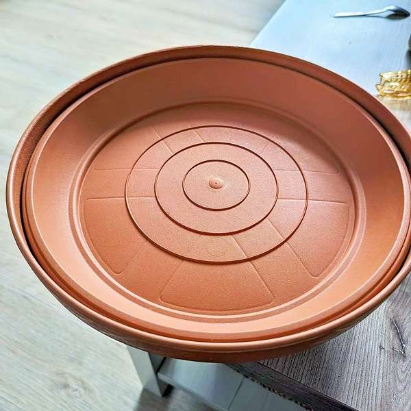 • Beim Einkauf der Materialien sollte man darauf achten, dass der Untersetzer in den Blumentopf passt.