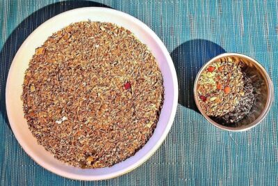Wenn man die Futterreste mehrerer Tage gesammelt hat, kann man diese ganz einfach in einem Rutsch mit einer solchen Futterreinigungsmaschine entspelzen.