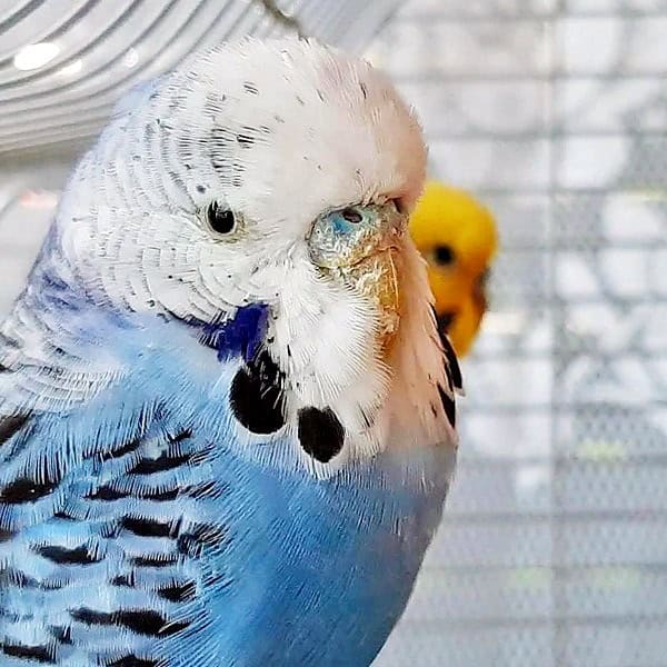 Auf dem ersten Foto kann man gut den ausgeprägten Milbenbefall bei Otto erkennen, der seinen Schnabel recht „verheerend“ aussehen ließ.