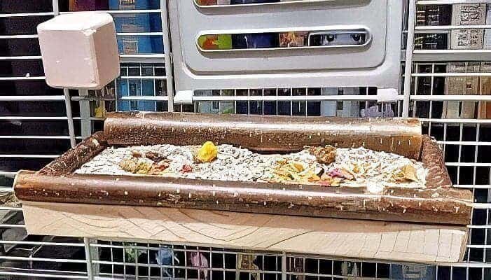 Außer dem Einstreu sollte sich in dieser Ebene nicht viel befinden, da man sich sonst das Reinigen des Vogelsandes erschweren und dabei mit der Vogelkot-Schaufel nicht alle Ecken erreichen würde.