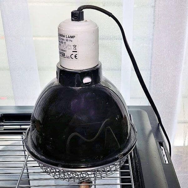 Somit empfiehlt es sich einen Dunkelstrahler (50-60W) sowie einen entsprechenden Reflektor mit Schutzgitter anzuschaffen: