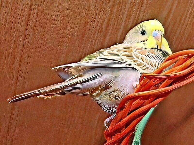 Während gesunde Wellensittich beim Schlafen häufig ein Bein anziehen, halten sich kranke Vögel meist mit beiden Füßen an der Sitzstange fest.
