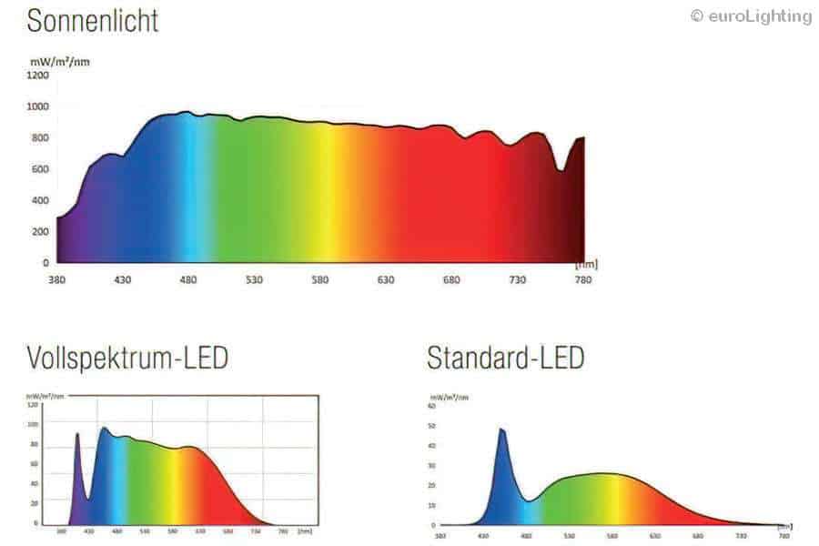 Die entsprechenden Vollspektrum-Leuchtmittel sind flickerfrei und haben ein recht ausgewogenes Farbspektrum.