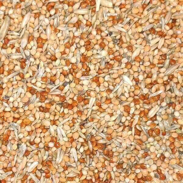 Neben Hirse enthält die Mischung nicht nur Glanzsaat und Haferkerne, sondern auch Grassamen. Somit wurde vollständig auf Ölsaaten verzichtet.