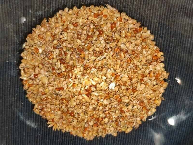 Wie das Bild der Spelzen oben zeigt hat die Futtermischung auch den praktischen Test durch meine Wellensittiche eindeutig bestanden.