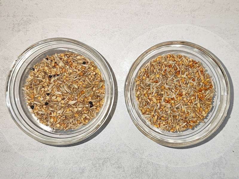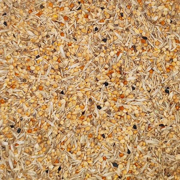 Anstatt der üblichen Ölsaaten sind hier vierschiedene Unkrautsämereien enthalten, die eine zusätzliche Abwechslung bieten sollten, vergleichbar mit den zahlreichen verschieden Samen der Bodendeckerpflanzen, die ihre wilden Artgenossen als Futter dienen.