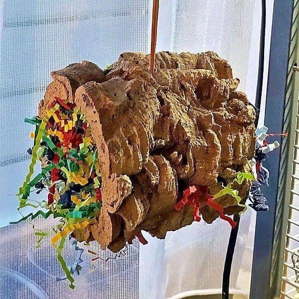 Man kann diese mit ZigZag-Papier füllen und dann am Käfig oder im Freiflugzimmer aufhängen.