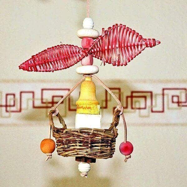 - Danach das Lederband von oben durch die Mitte des Weidenkörbchen stecken.