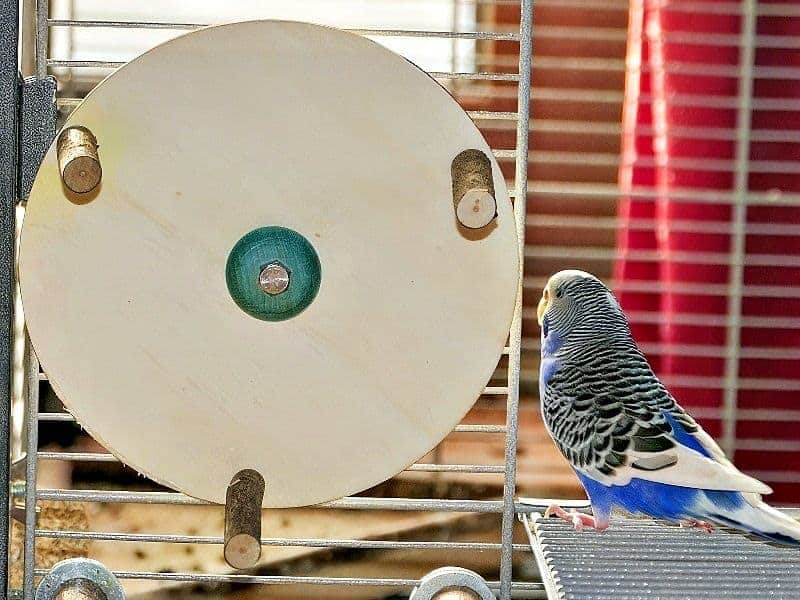 Welli-Karussell mit Käfigbefestigung und Naturästen als Sitzstangen.