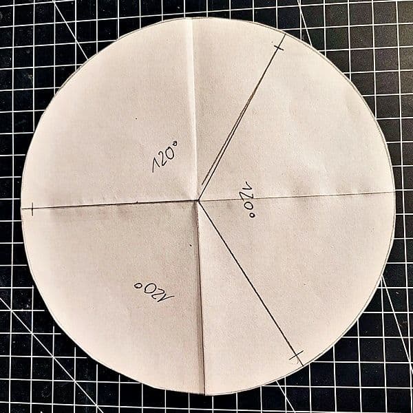 - Vom Mittelpunkt aus 3 Striche jeweils im Winkel von 120° zeichnen.