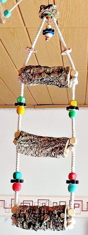 Bastelanleitungen für Korkast-Schaukeln, die im Freiflugzimmer aufgehängt werden können und nicht nur als Landeplatz, sondern auch als Knabbermöglichkeit dienen.