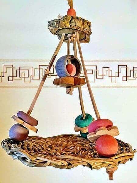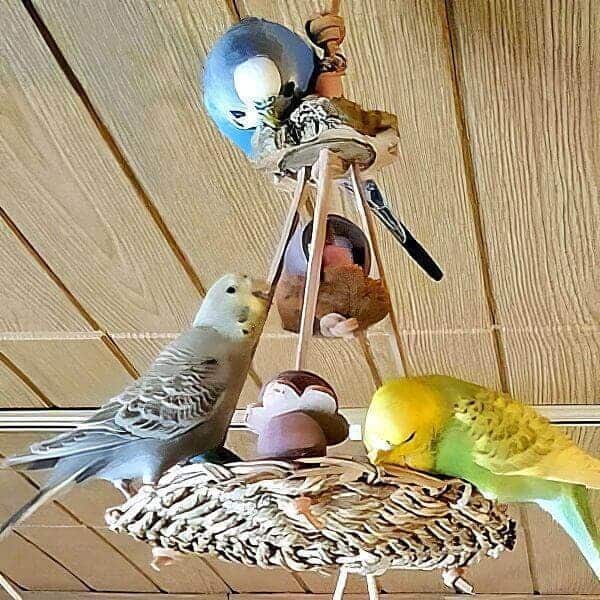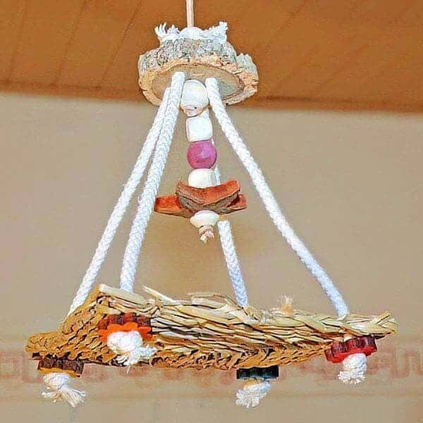 Schaukeln aus Seegras für die Sittiche, die im Freiflugzimmer aufgehängt werden können.