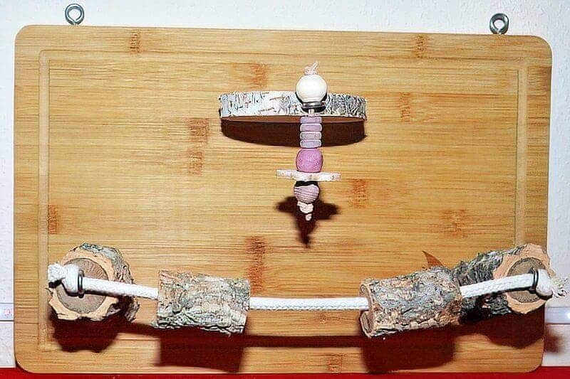 Bastelanleitung für ein Welli-Bild, das eigentlich ein Spielplatz zum Aufhängen an die Wand für die Wellensittiche ist.