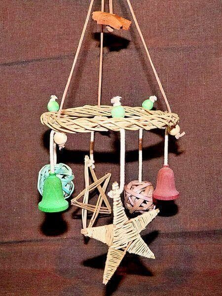 - Das Baumwollseil für die Glocken von oben durch die Öffnung stecken, verknoten und Knoten in die Glocke ziehen.