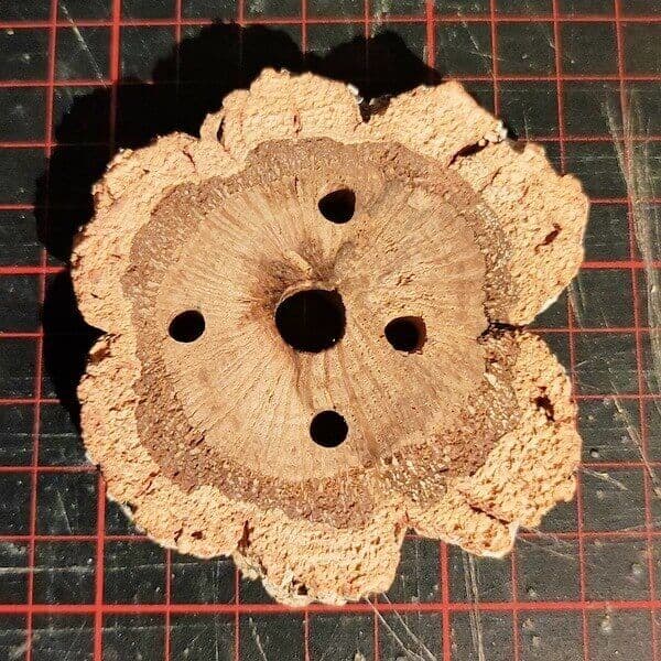 - In die Korkastscheibe 4 Löcher mit einem Durchmesser von 4mm bohren.