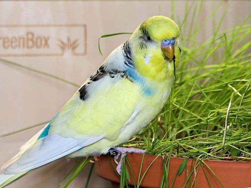 Ein kleines Wellness-Center mit frischem Vogelgras und einem Vogelbad.
