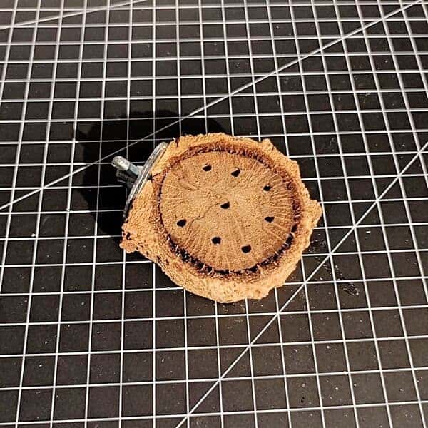 Auch aus einer abgeknabberten Korkastscheibe kann man ganz einfach einen praktischen Grashalter für den Käfig basteln.