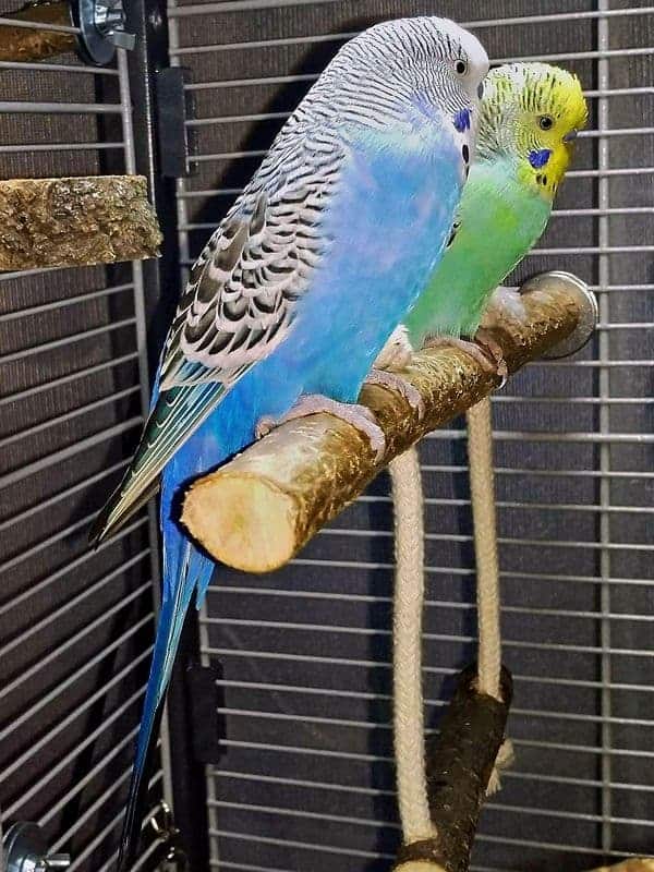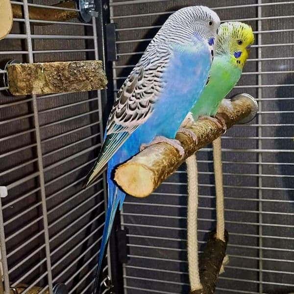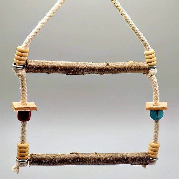 Verschiedene Schaukeln aus Naturholz, die mit einer Astschraube im Käfig befestigt werden können.