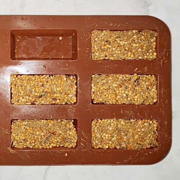 - Futterblöcke etwas abkühlen lassen, bis sie sich leicht aus der Form lösen lassen.