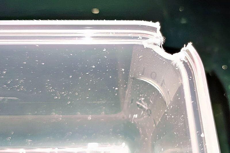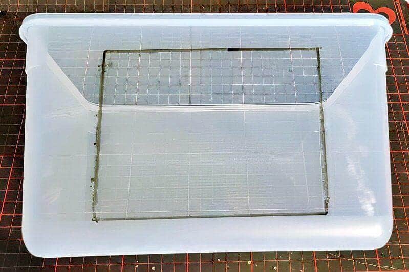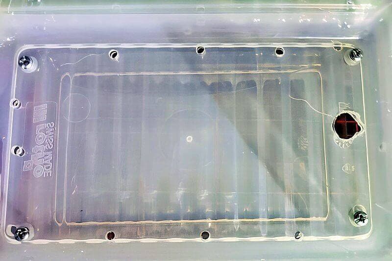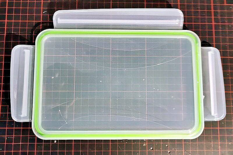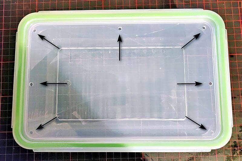 - In den Deckel der flachen Box an den Seiten und hinten Ablauflöcher (3mm) für das Wasser bohren.
