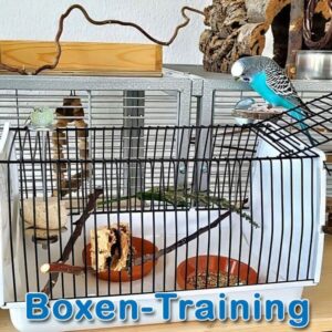 Immer mal wieder muss ein Wellensittich in eine Transportbox verfrachtet werden. was mit dem Boxen-Training vereinfacht werden könnte.