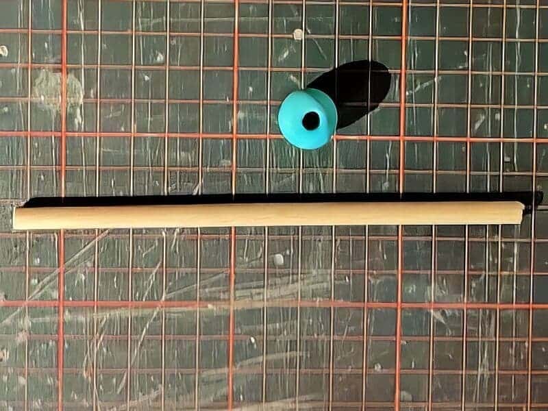 - Vom Holzstab ein Stück mit einer Länge von 15-20cm absägen.