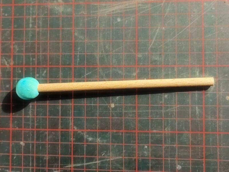 - Schaschlik-Spieß in das Loch stecken und Kleber aushärten lassen.