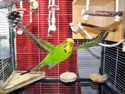 Die Mindestbreite des Käfigs ist somit hauptsächlich davon abhängig, ob die Wellensittiche im Käfig Platz zum Fliegen brauchen oder ausreichend bzw. 24h/Tag Freiflug haben.