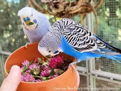 Besonders begehrt sind die nektarreichen Blüten des Klees und bei kleinen Sittichen auch die Sämereien.