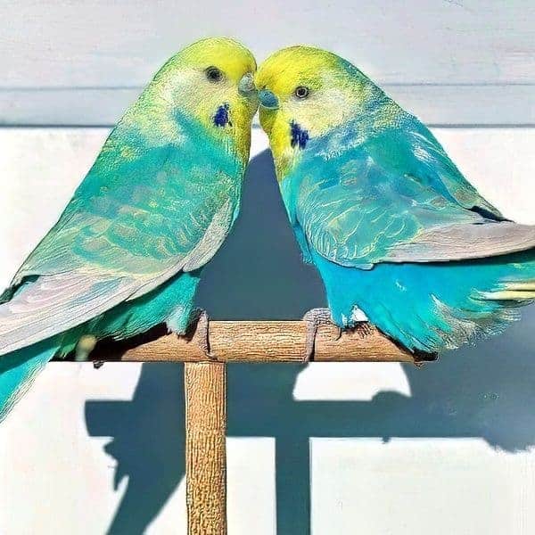 Bei diesen Wellensittichen handelt es sich um einen besonderen Farbschlag, der besonders durch seine ineinander verlaufenden auffällt.