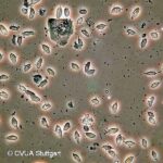 Hierbei handelt es sich um eine Infektion des Kropfes mit mikroskopisch kleinen Geiseltierchen, den Trichomonaden.